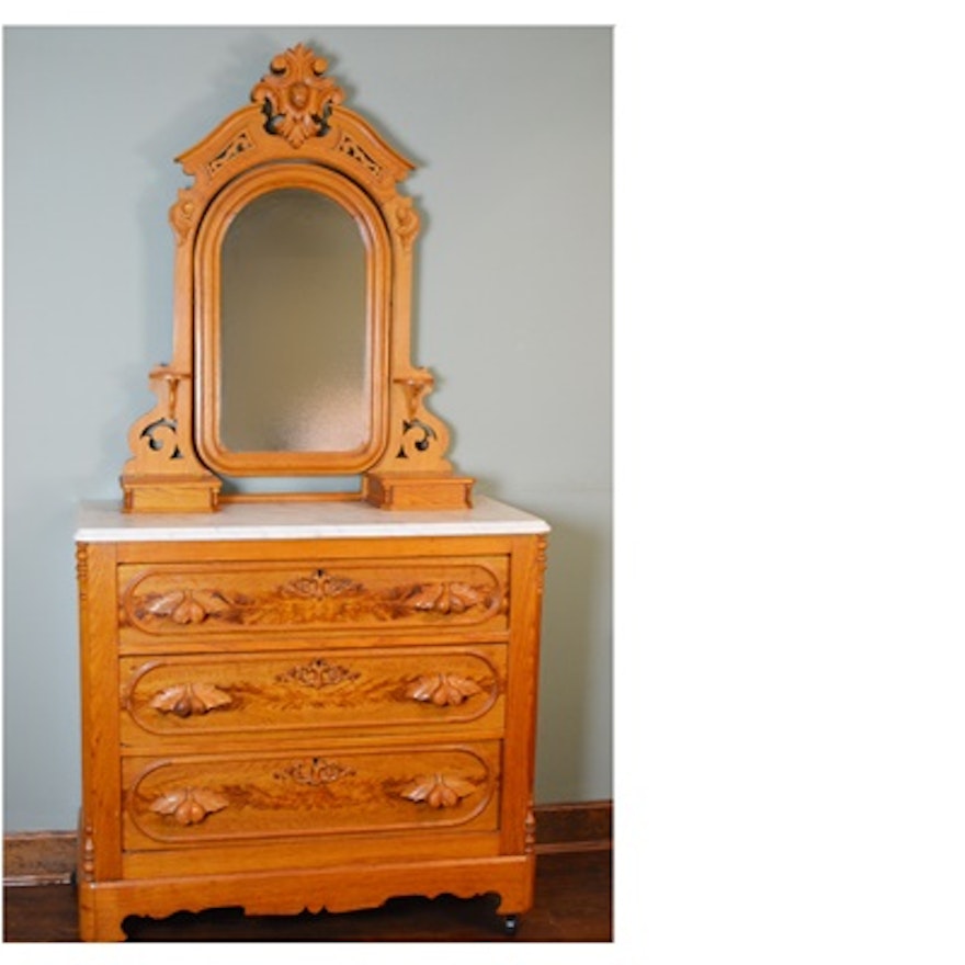 19th Century Victorian Quartersawn Oak Mirrored Dresser With